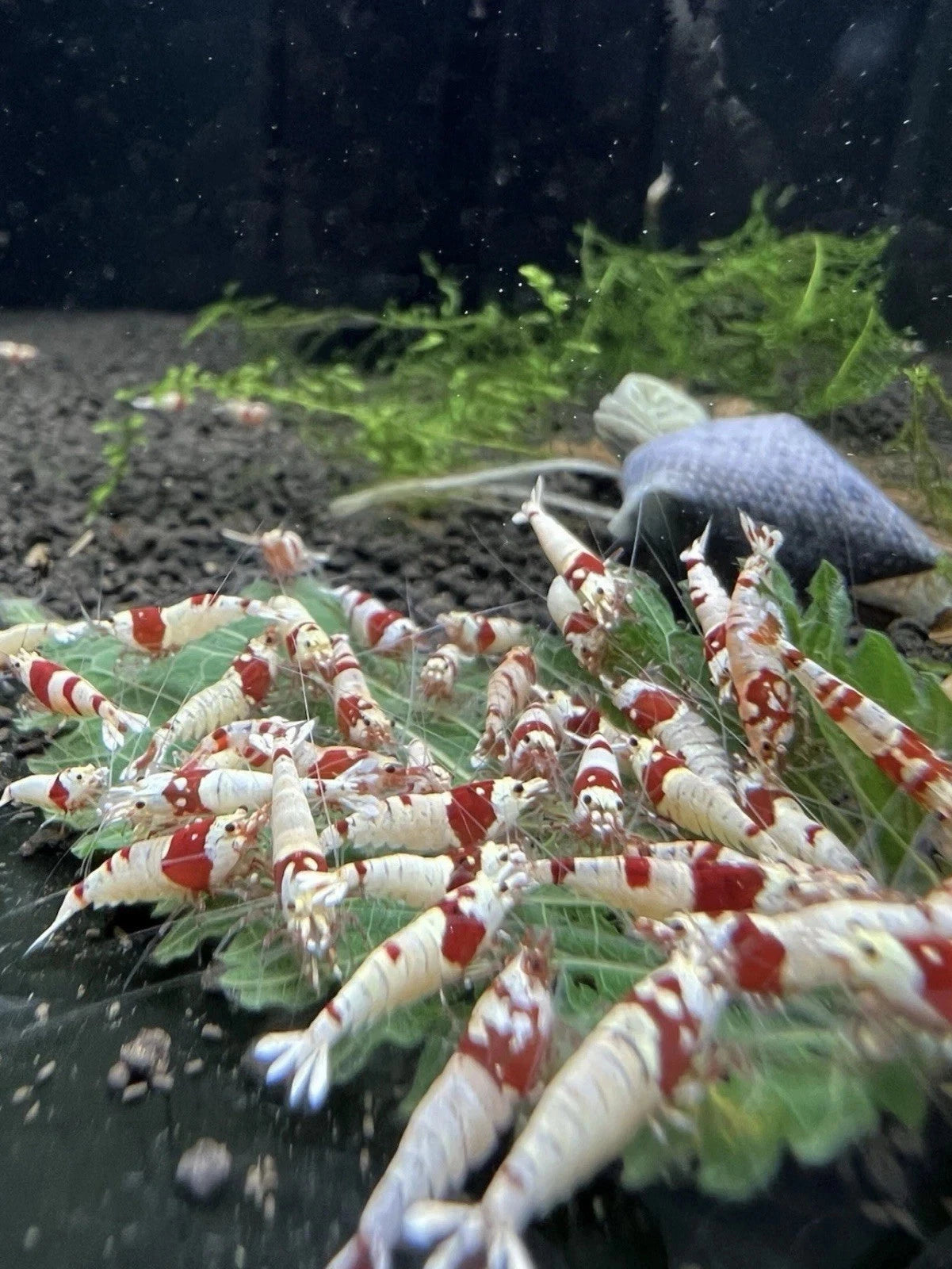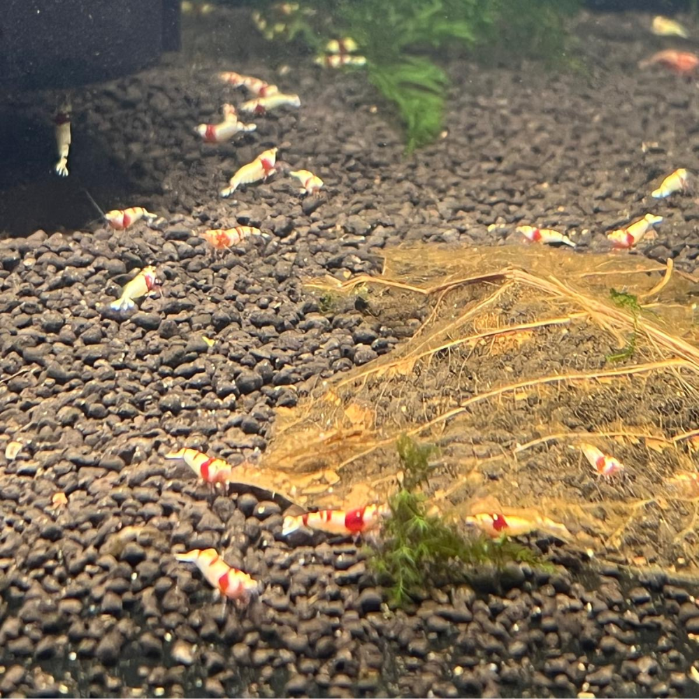 High Grade PRL (Pure Red Line) and CRB (Crystal Red Bee) shrimp with clear white and deep red patterns. These top-tier shrimp are bred for symmetry and vibrant coloration. Raised in low TDS, stable conditions for health and longevity, ideal for serious breeders and display tanks.
